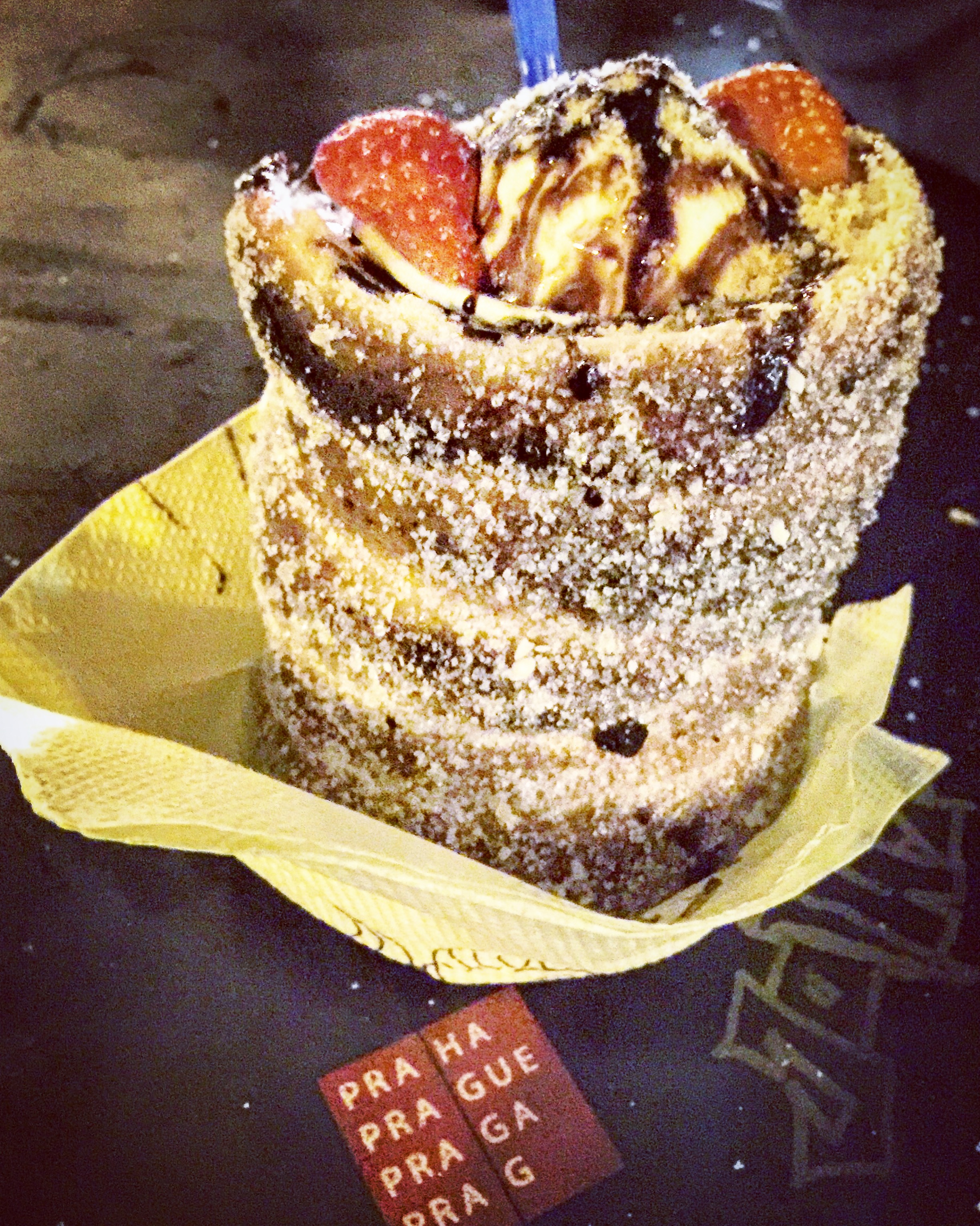 Trdelnik is a spit cake which is made of rolled dough, can be eaten as savoury or as sweets. It is so crunchy…I love it! But just had half of it as it is too sugary for me haha