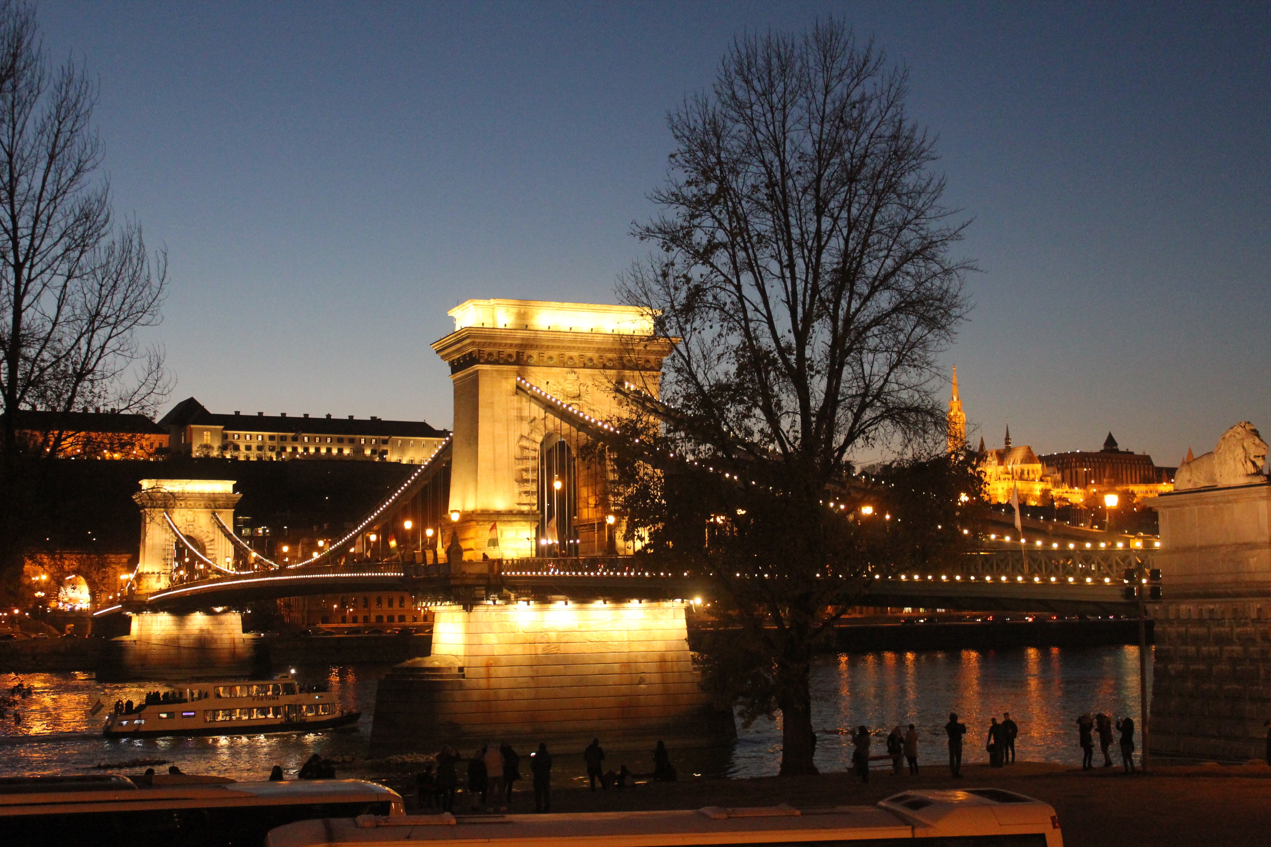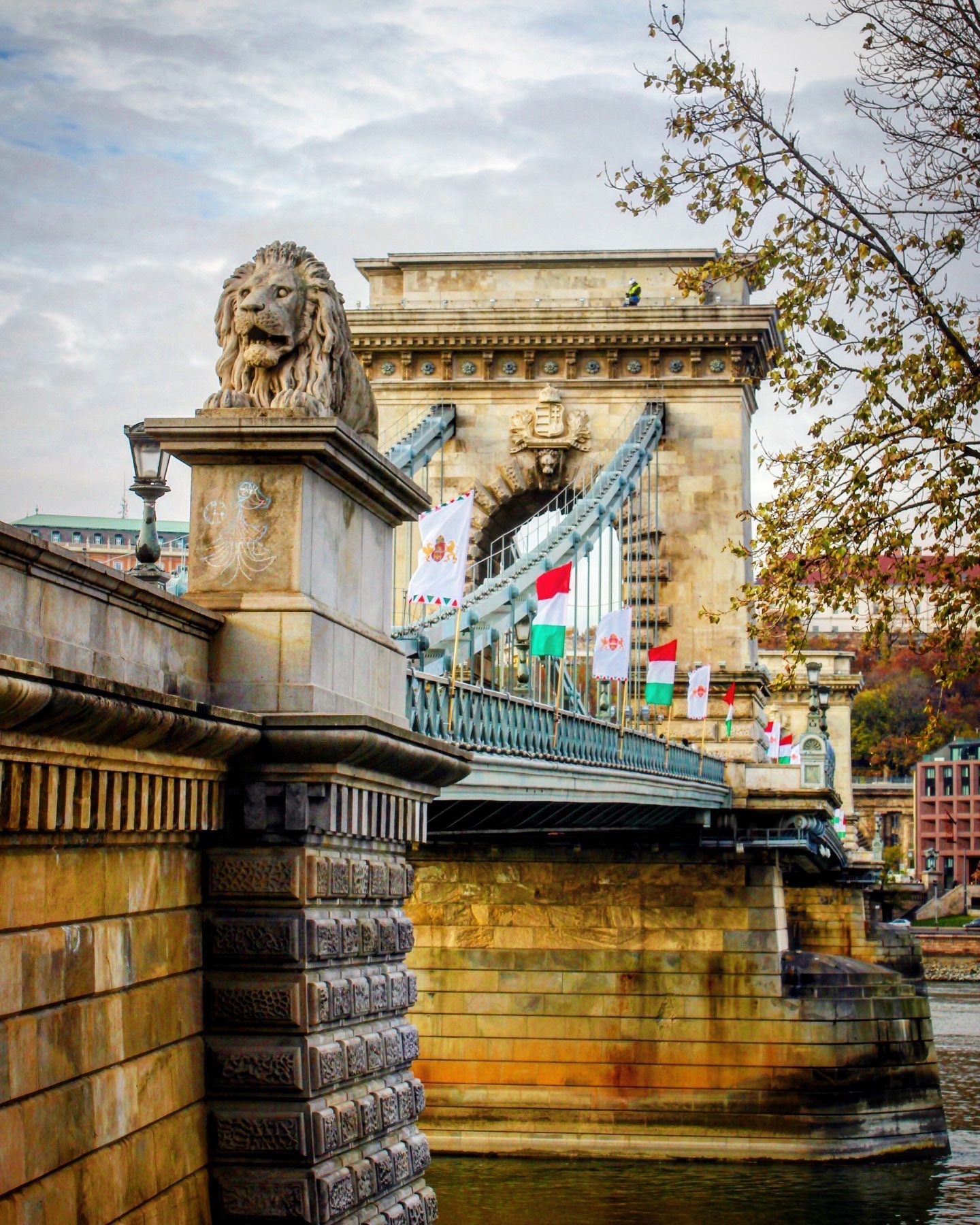The Szechenyi Chain Bridge is a suspension bridge that spans the River Danube between Buda and Pest. (Urban legend says that the lions in the Chain Bridge do not have tongues.)