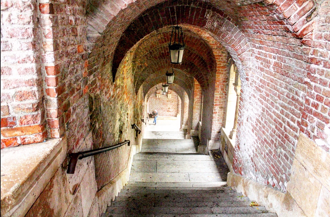 Hungarian crest adorning the wall near the funicular on Castle Hill. Notice the bent cross? Here is the story to that according to Wiki.