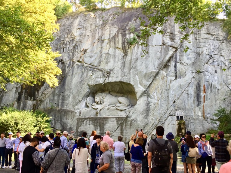 This is the Lion Monument which is a dying lion carved out of a wall of sandstone rocks. This monument is visited regularly by tourists and locals alike. It commemorates the Swiss guards who were massacred in the 1792 French revolution.