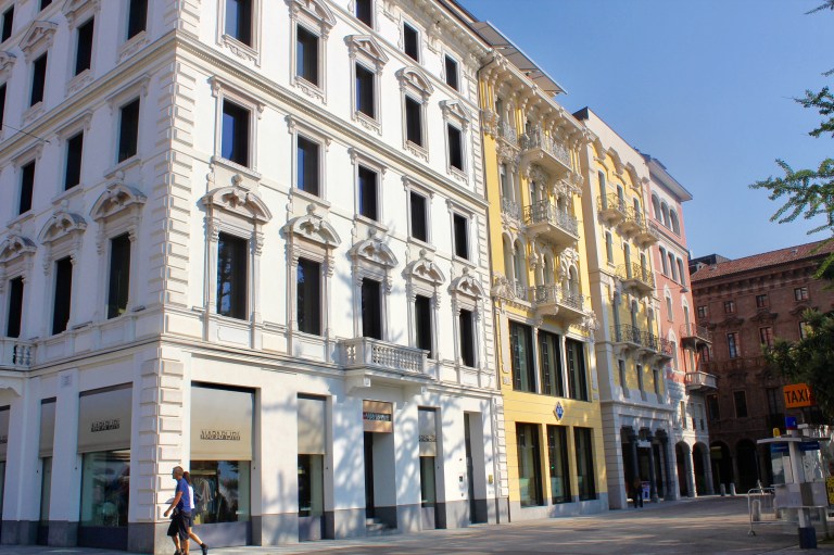 Strolling in Lugano’s main square, the Piazza Castello, you will see pastel coloured houses and shops with neo classical architecture and decors.