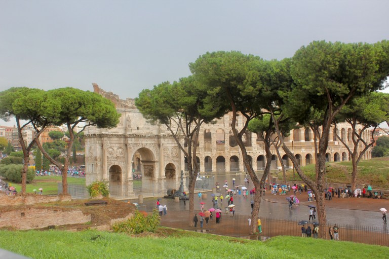 Bird’s eye view, normal shot and closeup shot of the Arch of Constantine