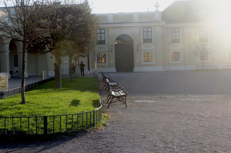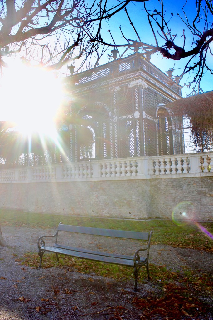 Some benches in the Schonbrunn Palace gardens in Vienna. This park was opened to the public in 1779 and has been a place of recreation for the Viennese population since then.