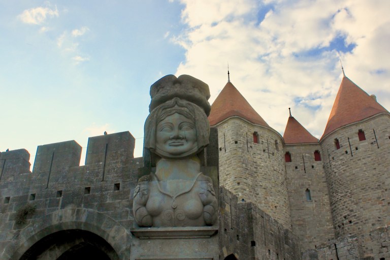 This is the Statue of Dame de Carcas, on the entry to the castle.