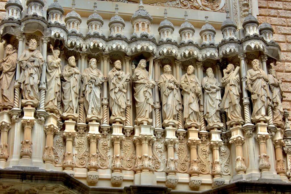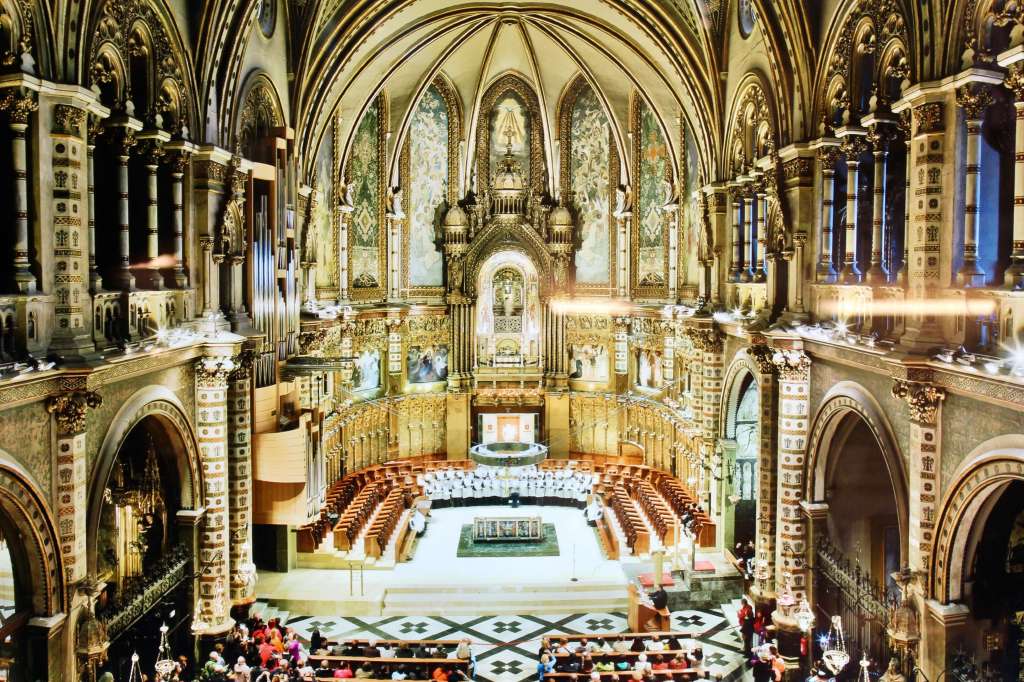 Visiting the Santa Maria de Montserrat Abbey. The Montserrat church is a Gothic structure, severely damaged in Napoleon’s war (1808-1814) and reconstructed in the end of the 19th century.