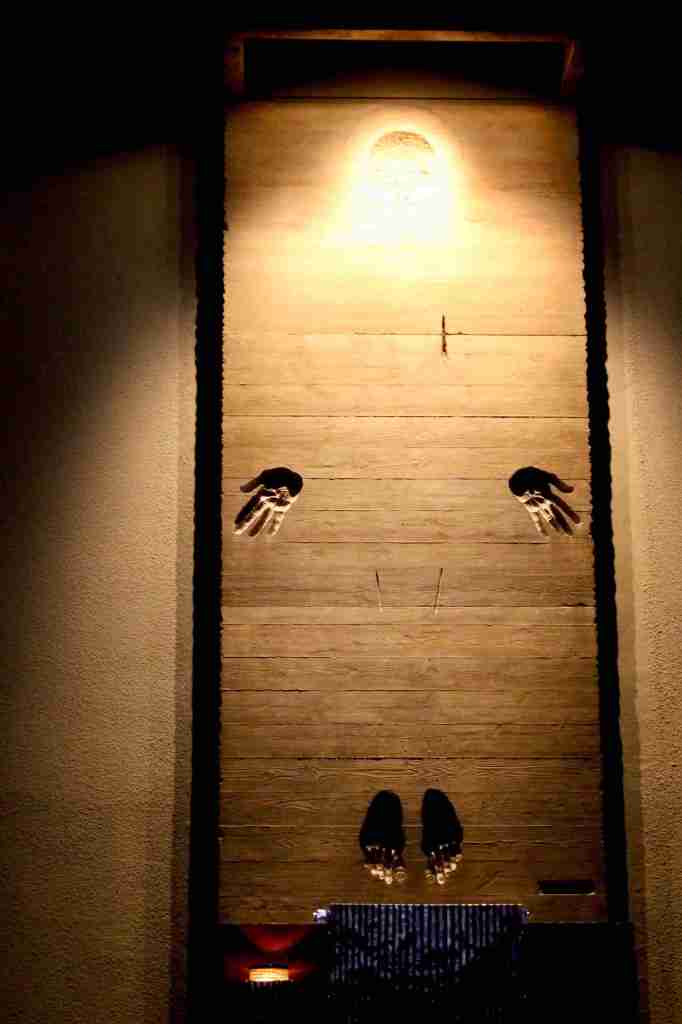 One of the modern art pieces exhibited inside the Montserrat Abbey.