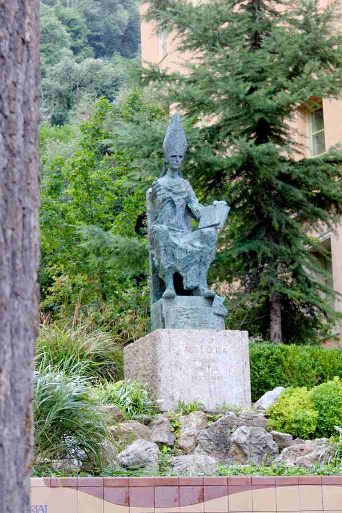 This is a sculpture of Obat Oliba the founder of the Montserrat Monastery, created by Manuel Cusachs in 1992.