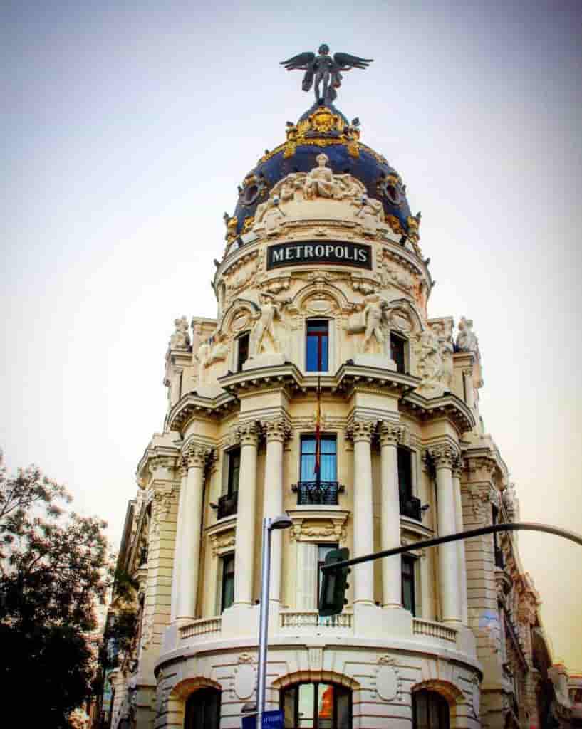 One of the most photographed buildings in Madrid is the Metropolis Building. It is a beautiful office building that sits on the corner of Calle de Alcala and Gran Vie, for everyone to admire. It is a Beaux Art architecture which is an extremely elegant French style which can be characterised by conservative lines and impressive sculptures.