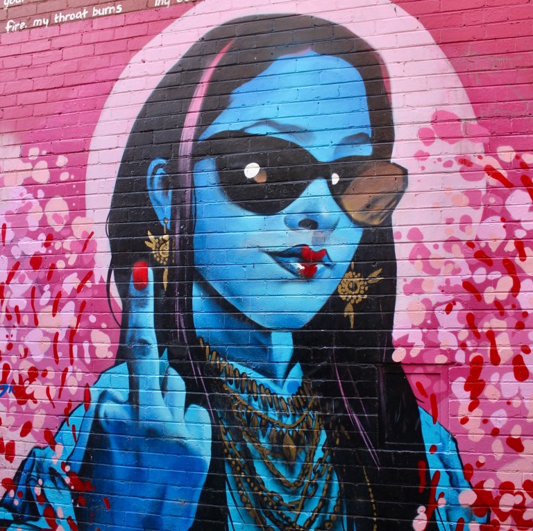 I know that street art is not for everyone. Some may be fed up with the street art that I post week in, week out. But this is my happy place … everywhere I go I try to look for one, or ten! I now have here some pink and blue art pieces for BeckyB’s Blue Squares Challenge and for Nancy Merrill’s Shades of Pink Challenge.
