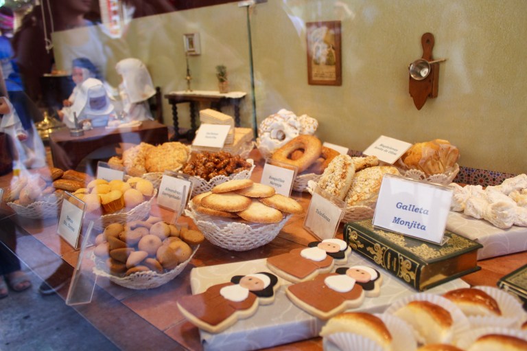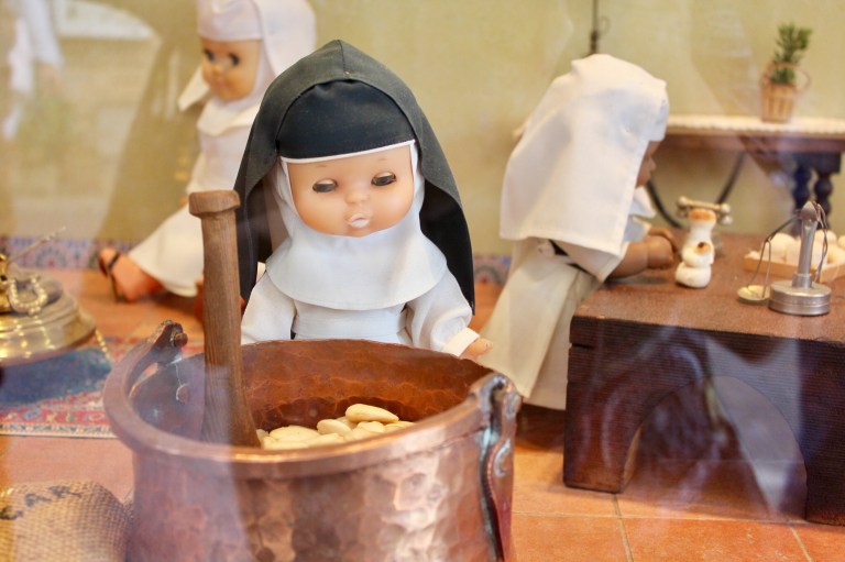 There is this cute little cafe-bakery in Toledo, Spain named El Cafe de Las Monjas. You can see the nuns actually baking and some making the famous marzipan from Toledo.