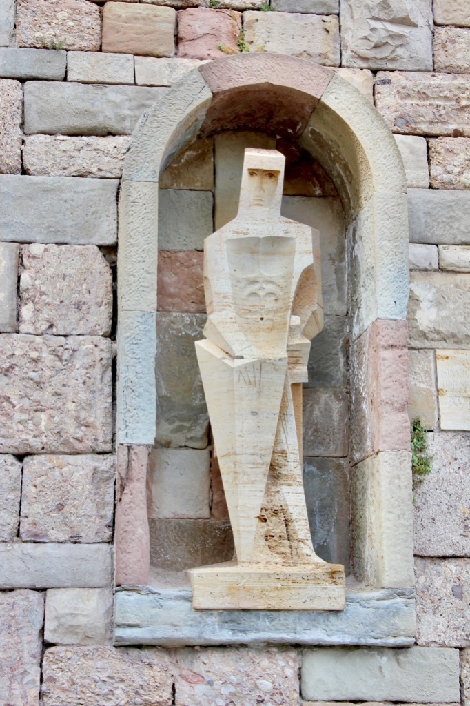 A sculpture and tiles outside the abbey of Montserrat, Spain