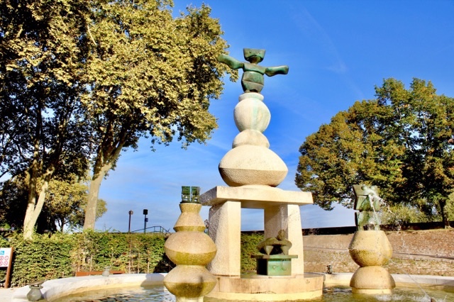 The modern sculpture fountain that was restored in 2015 and offered to the city of Amboise.