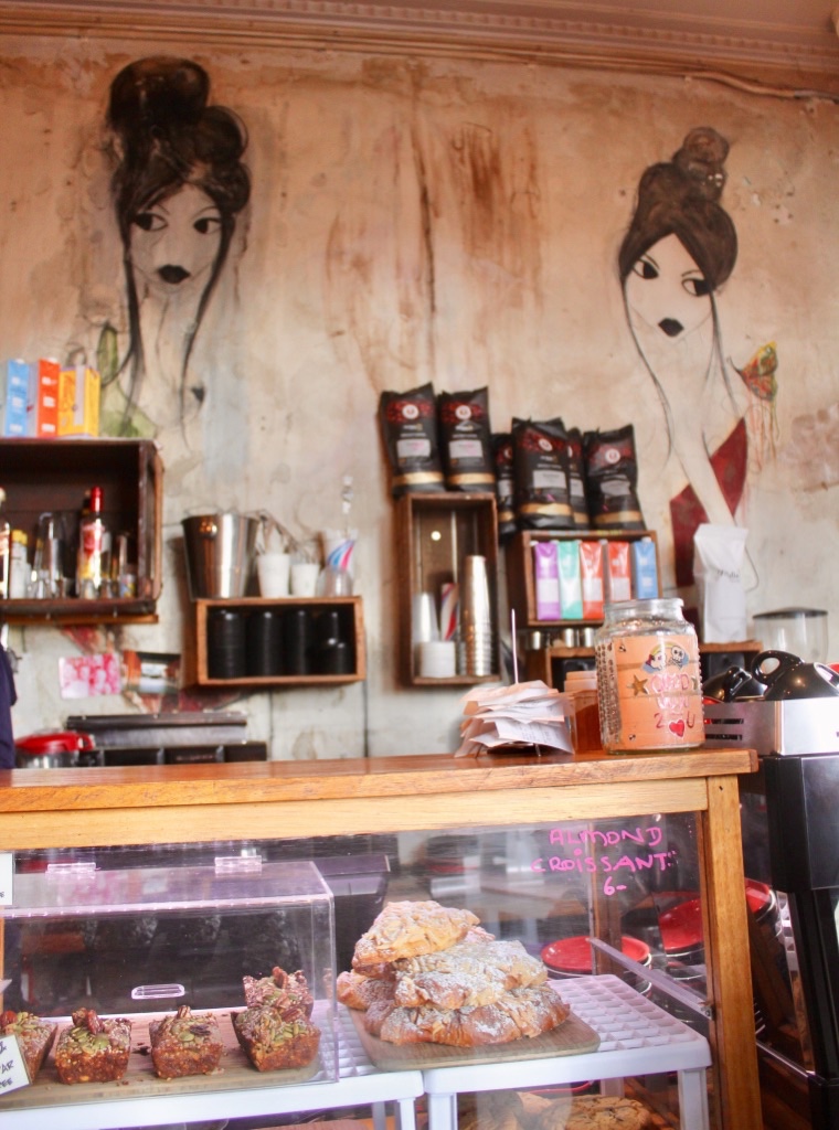 Had an afternoon coffee at Piccante Cafe in Fitzroy North, where the decor is rustic and the artwork in the front is amazing.